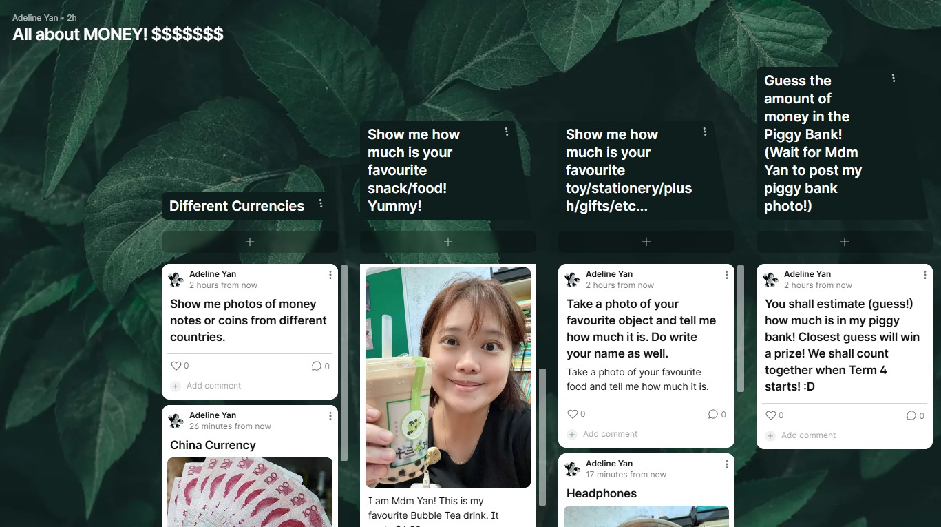 Pupils use Padlet to share with teachers and friends about Maths around them. |